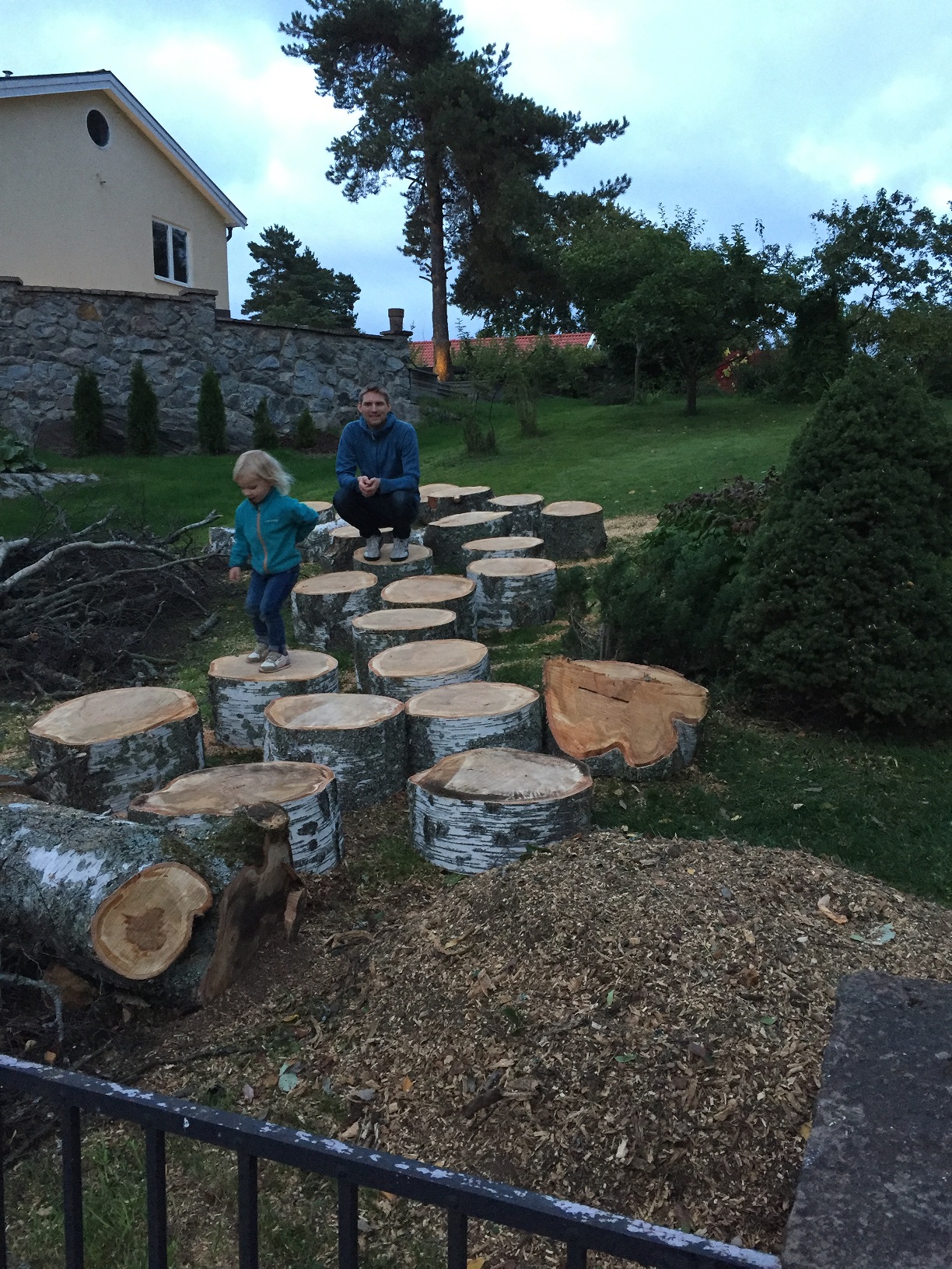 Igår firade vi fyra månader som gifta med att låta hugga ner en björk, skicka de sista tackkorten (foton tog slut så vi var tvungna att beställa fler) och äta den sista bröllopschokladen.