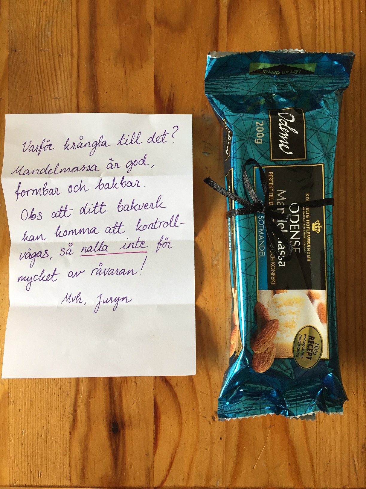 För några dagar sen fick jag råvara levererad i brevlådan och det har ”bakats” till en kaka som ligger och väntar i kylskåpet. Behövdes inte så mycket bearbetning eftersom formen nästan var rätt redan från början. ”Kakan” var klar i god tid före 16.00 igår som var deadline. Däremot vet jag ju fortfarande inte när den ska visas upp, så kanske får jag helt enkelt äta upp den själv om tre veckor. Jag har iaf inte nallat något alls ännu!