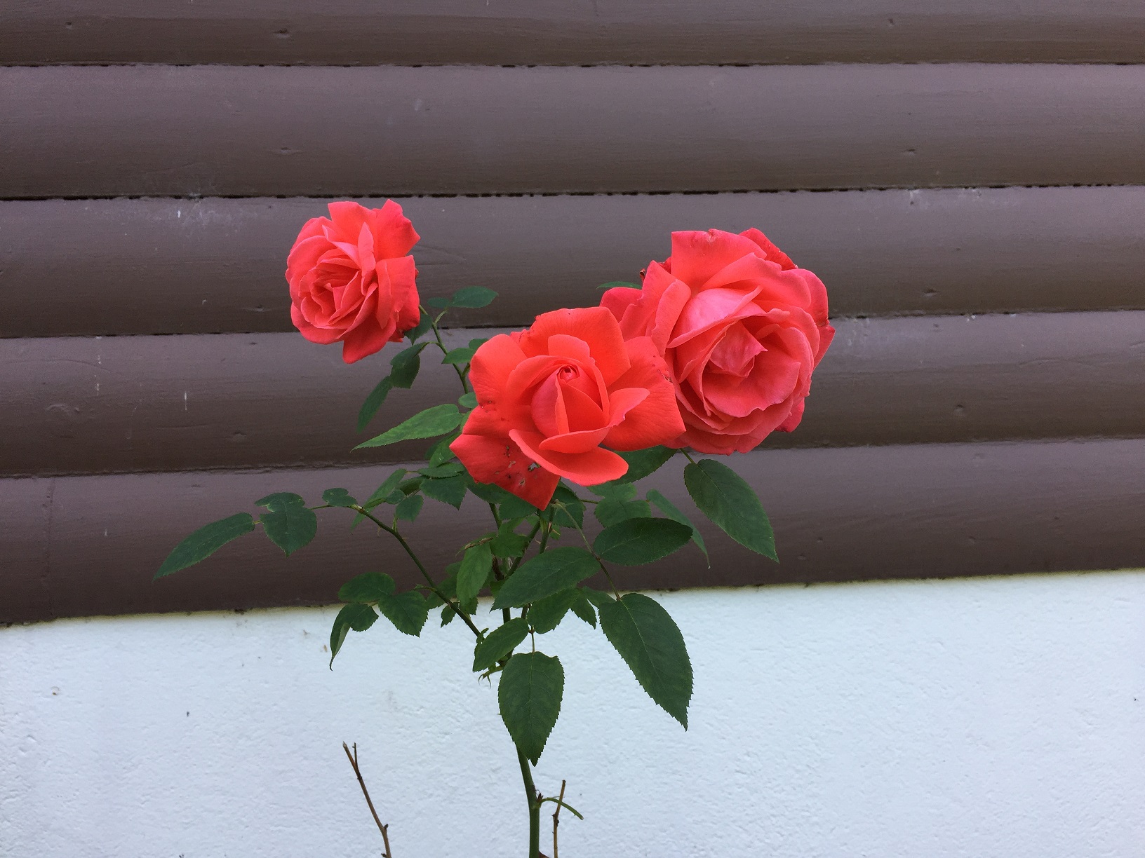 Denna bild har egentligen inget alls med texten att göra. Men tre röda rosor passar väl i en bröllopsblogg. Efter att ha skrivit om saker som hänt i dåtid är vi snart ikapp tidsmässigt. Och så här ser det ut utanför vårt hus nu.