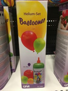 Så igår gick jag till Clas Ohlson och köpte ett par tuber och släpade hem dem i värmen (tillsammans med 1000 ark skrivarpapper). Vilken timing då att de hade 15% på hela köpet så till slut vart det inte snordyrt iaf. Återstår att se om våra gäster gläds åt våra ballonger men jag är iaf nöjd över att överlistat denna heliumdjungel 🙂