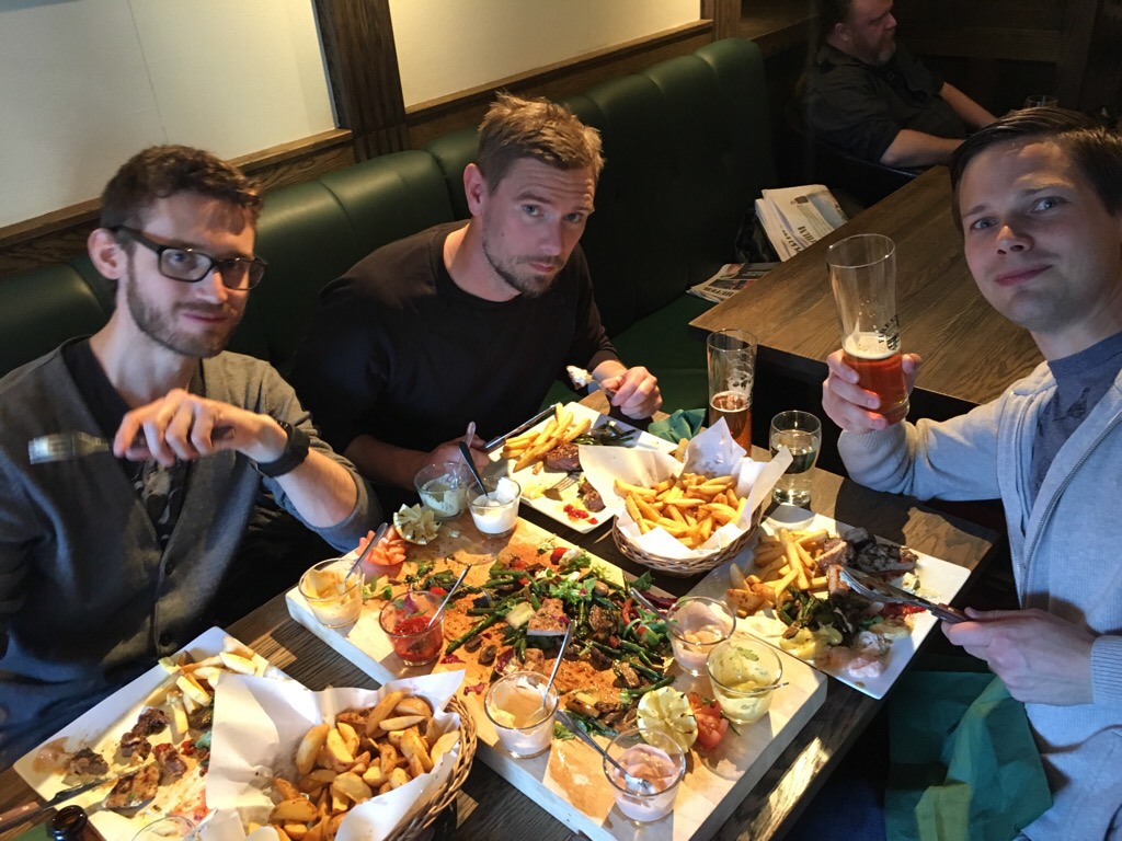 När Veronika tog barnen till svärmor för att ha tärnmiddag så passade jag på att ta med brudsvennarna på sunkpub för mat och öl. Genomgång av programmet, kläder samt delegerande av uppgifter blandades med en stor dos pappasnack. Mkt trevligt!