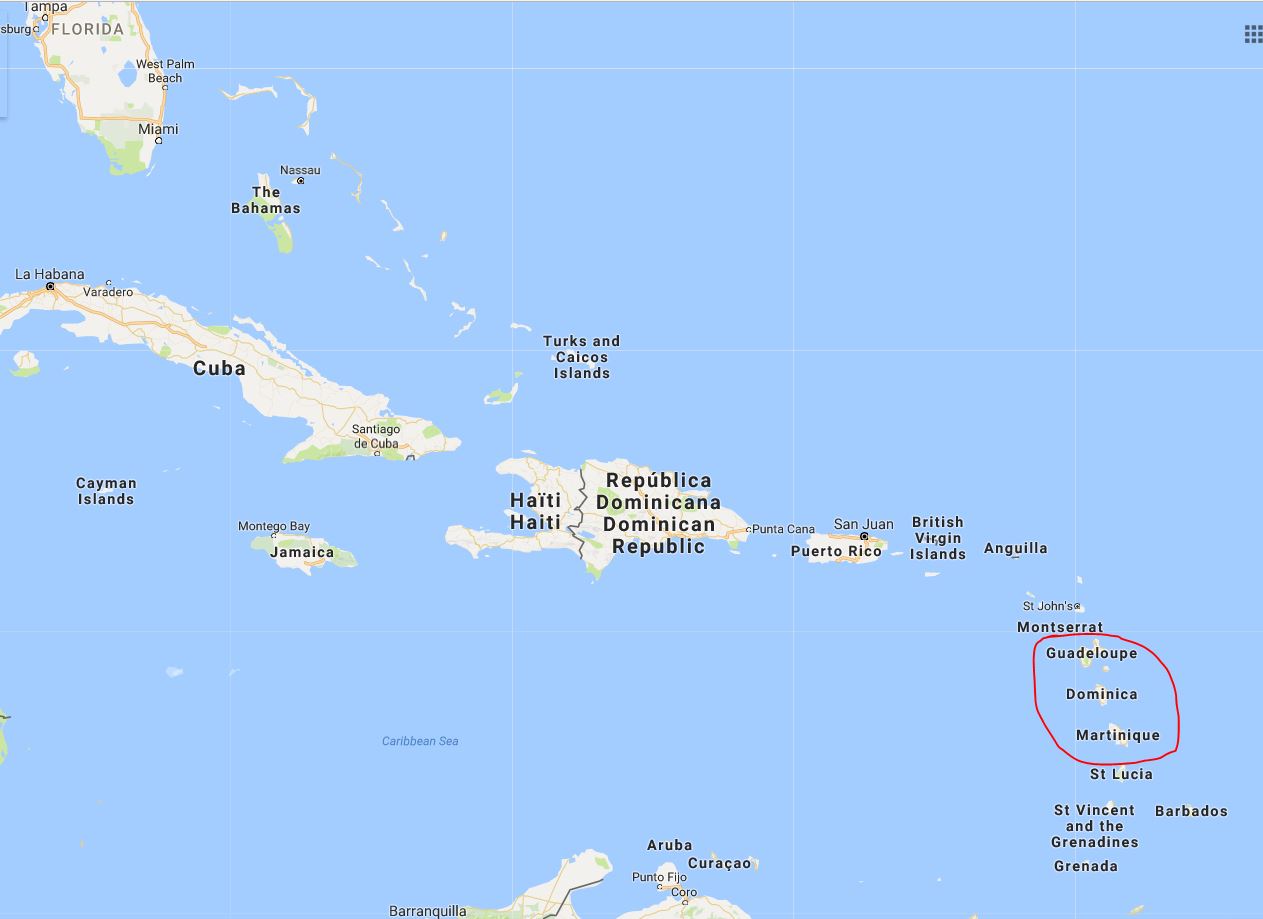 Martinique, Dominica och Guadelope, som är de tre öar vi i princip hade beslutat oss för att resa till ligger alla söder om området där Irma och José drog fram.