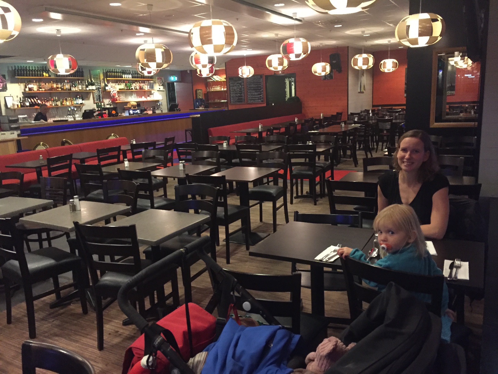 Middag på en tom restaurang – perfekt för småbarnsfamiljen. Fast just den här gången hade det faktiskt funkat med vilken restaurang som helst. Barnen uppförde sig exemplariskt. Förutom lite spilld mjölk.