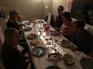 Våra toastmasters, Malin och Tobias, har inte träffats tidigare så vi tänkte att det var lämpligt för dem att säga hej till varandra. Så vi bjöd hem dem och deras familjer till oss. Gifta som de är kom de också med bra tips inför bröllopsbestyren och som belöning fick de äta älg från Alsen. Det vart mycket trevligt och inte minst mycket stim bland barnen.